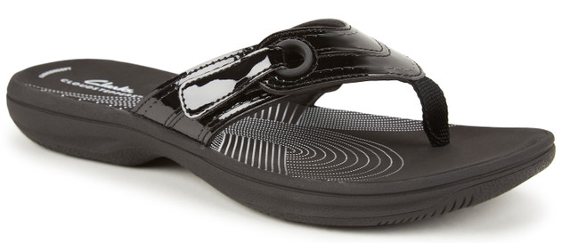 Flip-flop Breeze Reyna is part of Clarks Cloudsteppers collection, so you know that total underfoot comfort is a sure thing. Built for summer holidays and lazy weekends in the back garden, it's crafted with soft fabric uppers for a skin-gentle feel, while grippy soles make for confident support and easy-breezy steps. Features round toe, slip-on and Riptape closure. Heel height: 1.125 in. Shoe width: medium. Upper and Lining: textile. Sole: 100% manmade.
