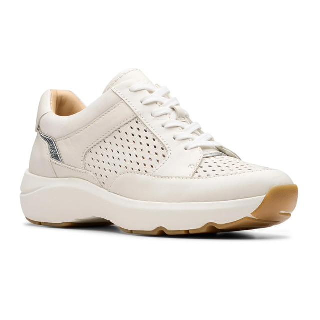 10,000... and 1. Counting steps? Goals are met -- and crushed -- in these Clarks Artisan leather sneakers. Featuring a premium leather upper and lace-up entry, these cute kicks support each and every step with a molded (and removable) Contour Cushion footbed and a lightweight EVA midsole, while the durable rubber outsole provides grippy traction. From Clarks Footwear.