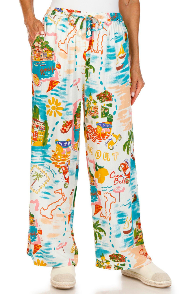 Elevate your beach look with these classic rayon cover-up pants featuring a scenic design. Just as light and breathable as the Floral Purple style, they offer the same relaxed fit and effortless comfort, now with a dreamy landscape print that adds a touch of wanderlust to your swimwear vibe.