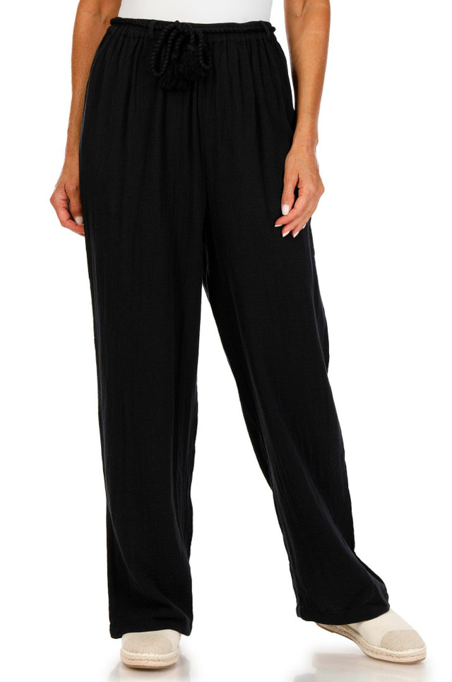 Timeless and versatile, these classic rayon cover-up pants in solid black offer effortless elegance. With the same light, breathable feel and relaxed fit, theyre perfect for pairing with any swimwear. A chic staple for beach days or poolside lounging.
