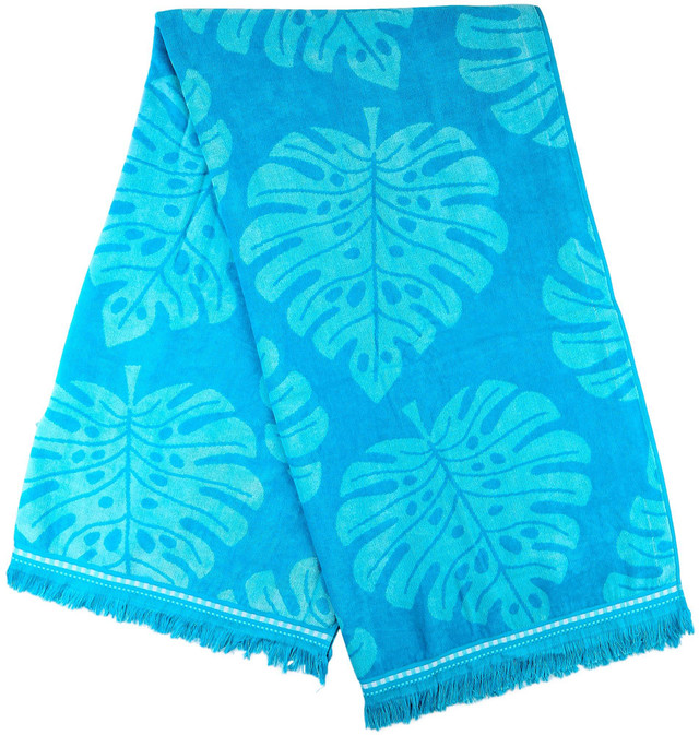 Coastal Home adds a touch of coastal style to your home decoration. This beach towel features a fun print design and striped trim. Measures 68in. L x 36in. W. Fabrication is 70% cotton and 30% viscose.