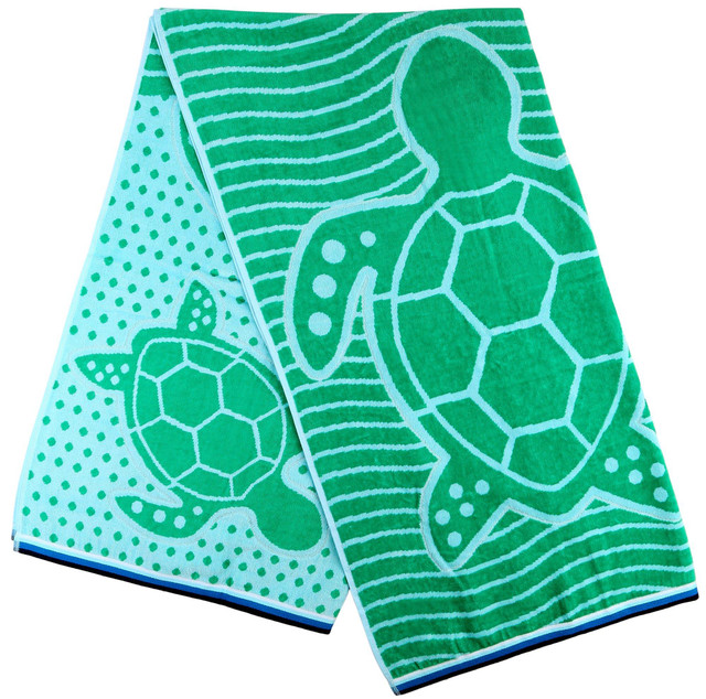 Coastal Home adds a touch of coastal style to your home decoration. This beach towel features a fun print design and striped trim. Measures 68in. L x 36in. W. Fabrication is 70% cotton and 30% viscose.