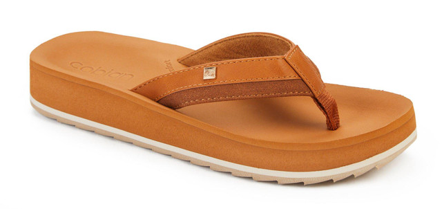 The Cobian Women's Reya Rise Flip Flop Sandals offer a perfect blend of comfort and style. Featuring a cushioned footbed and a sleek, modern design, these flip flops provide all-day support while adding a touch of elegance to your casual look. Ideal for beach days, poolside relaxation, or everyday wear, the Reya Rise sandals are a must-have for your warm-weather wardrobe. Comfortable synthetic leather strap with soft microfiber lining. Soft cushioned top sole with textured closed pore footbed.