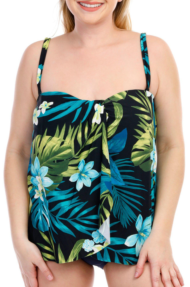 The Womens Midnight Plumeria Clarity Bandeau Bra Sized Tankini Top features innovative back-smoothing patented Shapemaker lining that smooths your curves to accentuate your figure for a sleeker silhouette. The flowing petal hem is flattering while the dark, sophisticated, floral print accents this bandeau tankini for luxurious, elegant swimwear.