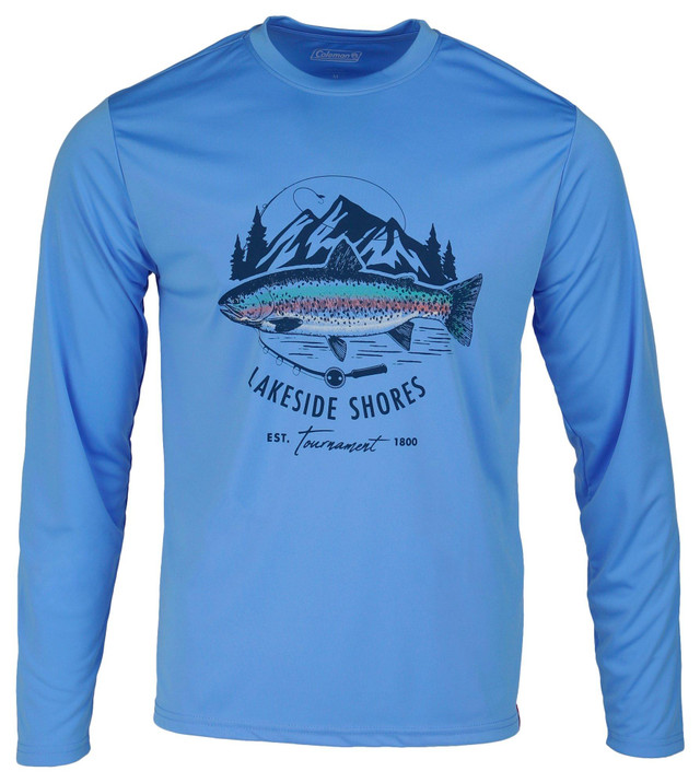 Stay cool, dry, and protected in this mens long sleeve graphic top. Engineered with UPF 50+ sun defense, moisture-wicking tech, and quick-dry performance, its built for long days under the sun. Whether you're fishing, hiking, or just living active, this shirt delivers comfort and style that works as hard as you do.