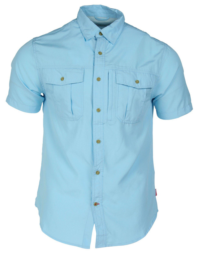 The Colemans mens button-down shirt is built for performance and comfort, featuring quick-dry fabric with moisture-wicking technology to keep you cool and dry. Designed with a classic collar and two chest pockets for utility, it also offers UPF 50+ protection to shield you from the sun. Ideal for outdoor adventures, travel, or everyday wear.