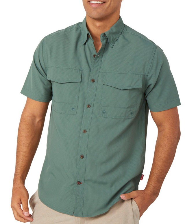The Colemans men's button-down shirt is built for performance and comfort, featuring quick-dry fabric with moisture-wicking technology to keep you cool and dry. Designed with a classic collar and two chest pockets for utility, it also offers UPF 50+ protection to shield you from the sun. Ideal for outdoor adventures, travel, or everyday wear.