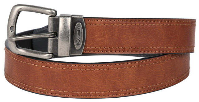 Twice the style, one smart accessory, the Reversible Double Stitch Belt offers two looks in one with sleek synthetic leather and contrast stitching for a refined finish. Width measures approximately 38 mm.