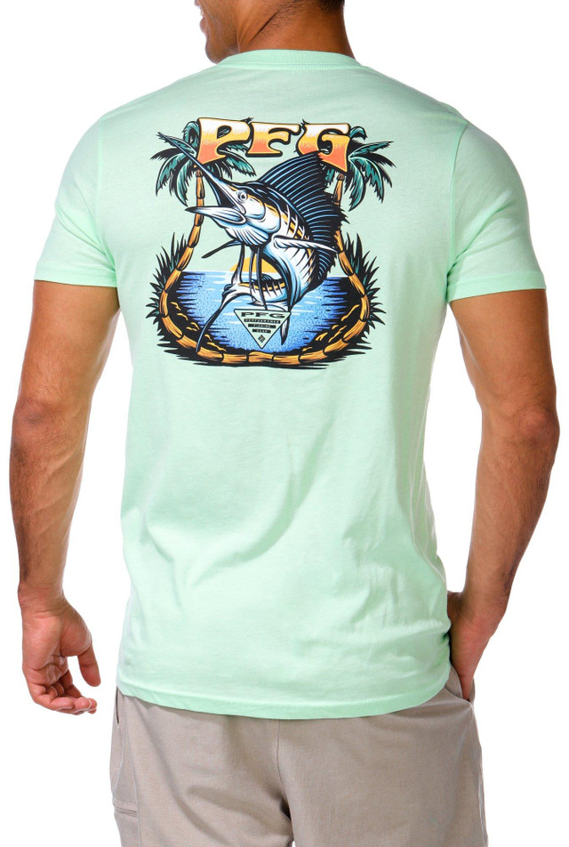 Show off your passion for the open sea with our Men's PFG Marlin Graphic T-Shirt. Featuring a bold marlin graphic on the back, branded script on the front chest, short sleeves, and a classic crew neckline, this tee is made for comfort and coastal adventure. Fabrication 100% cotton