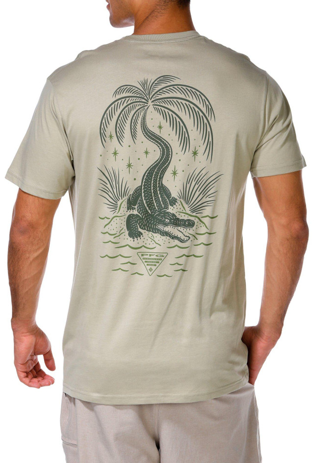 Add some bite to your style with our Men's PFG Later Gator Graphic T-Shirt. Featuring a bold gator graphic on the back, brand logo script on the front chest, short sleeves, and a classic crew neckline, this tee is perfect for laid-back days on or off the water. Fabrication 100% cotton