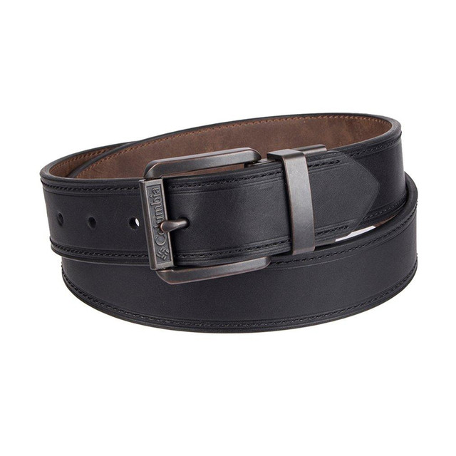 Two belts in one! Able to switch between brown and black color options, this men's reversible leather belt from Columbia is twice as nice as a normal belt. Reversible design. Engraved logo. Stretch fabric. Copper-tone buckle. 1.38-inch width