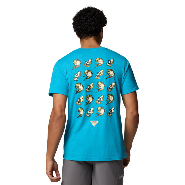 Moisture-wicking and UV-shielding for comfort and protection, this lightweight shirt also features a fun print and graphic at the front. Features: Omni-Shade UPF 50, Omni-Wick, Center Back Length: 29.0 in. Fabric Content: 50% Polyester, 25% Cotton, 25% Rayon.