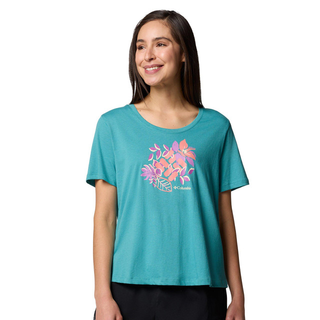 Complete your outdoor look with this scoop neck shirt. The graphic print adds interest while binding on the collar provides a finished look. Center back length: 24 in.