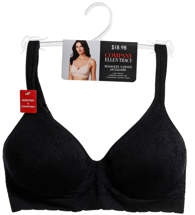 Introducing the Seamless Curves Jacquard Bra, where elegance meets comfort. Crafted with soft stretch fabric, this bra features wirefree molded cups for a natural shape and ultimate support. The jacquard design adds a touch of sophistication, while the convertible comfort straps offer versatile styling options. Perfect for all-day wear, this bra ensures you feel confident and comfortable, no matter the occasion. Fabrication is 94% nylon, 6% spandex.