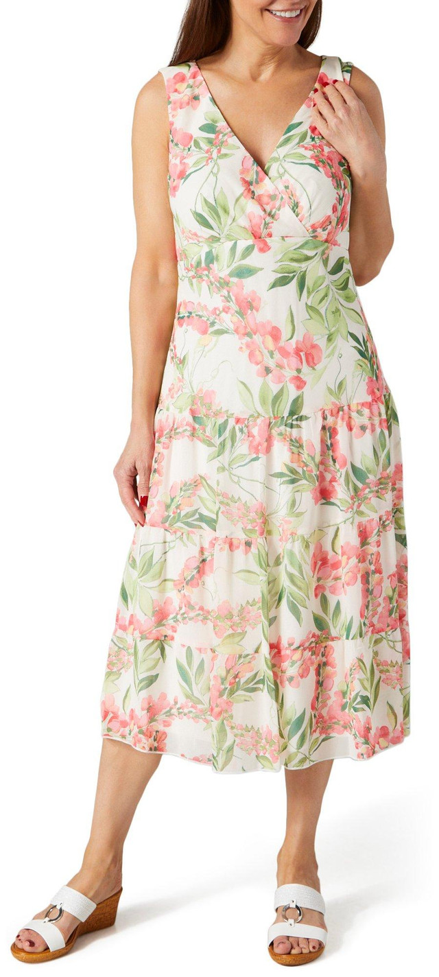 Connected ApparelConnected Apparel Womens Sleevless Floral V-Neck Dress