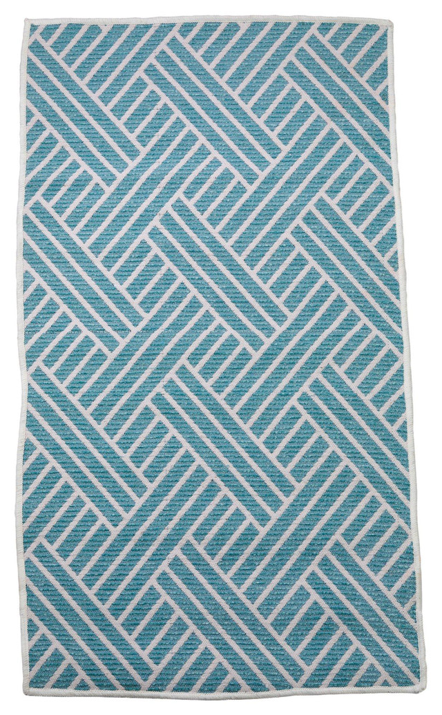 Add vibrant style to your space with the 27x45 Turquoise Lattice Accent Rug. Featuring a bold turquoise lattice pattern, it brings a fresh look to entryways, kitchens or living areas. Includes a skid resistant backing for secure placement. Machine washable for easy care. Fabrication is 72% polyester, 28% cotton. Measures approximately 27 in x 45 in.
