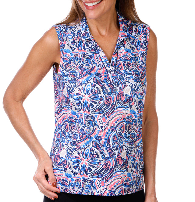 Coral Bay Golf Petite Active Sleeveless Painterly Golf Polo