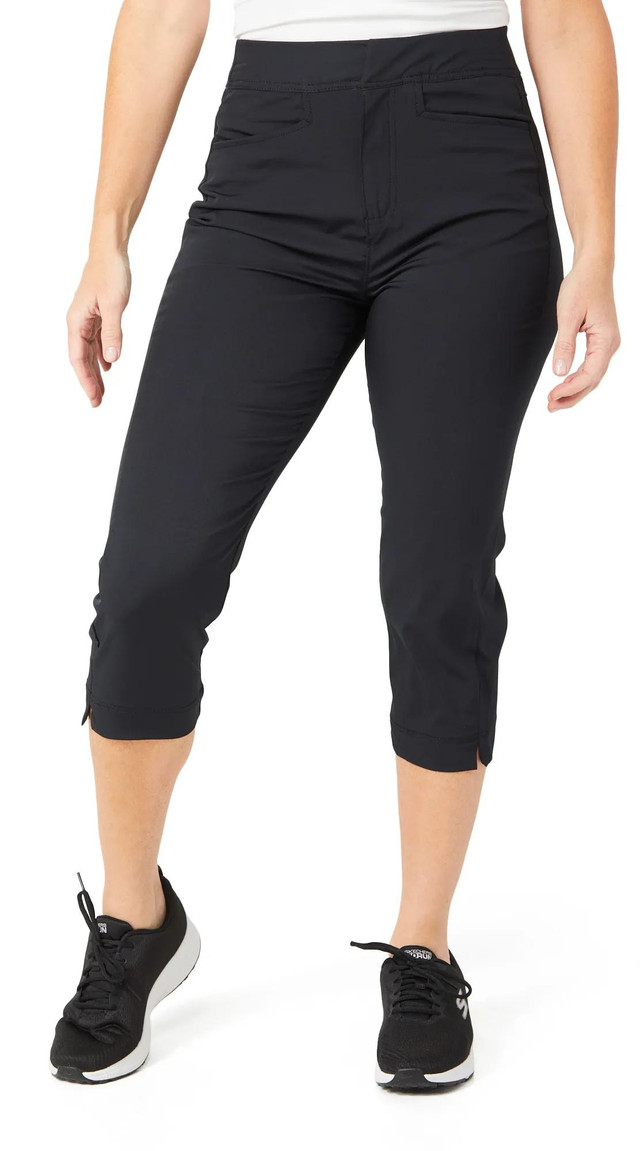 Stay cool and comfortable in these Petite Stretch Woven Capris. Designed in a solid color with a button-fly zip closure, they feature UPF 50+ sun protection, moisture-wicking fabric, and quick-dry technology. The 21-inch inseam offers a flattering fit perfect for active days outdoors. Fabrication 90% polyester, 10% spandex