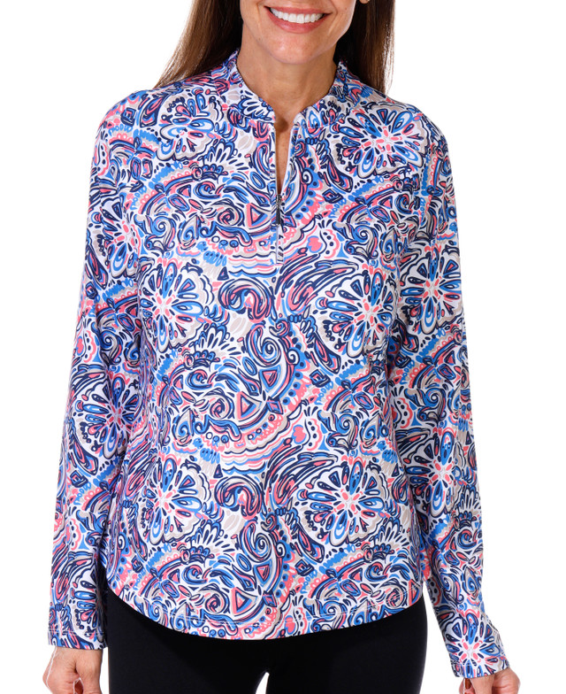 Coral Bay Golf Womens Long Sleeve 1/4 Zip Painterly Top