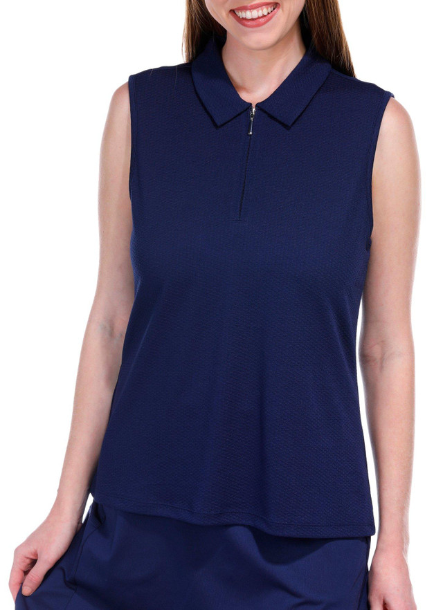 This Golf Women's Textured 1/4 Zip Sleeveless Polo is crafted from a blend of 84% polyester and 16% spandex, offering a comfortable, stretchy fit that moves with you. The textured fabric adds a stylish touch, while the 1/4 zip design allows for adjustable ventilation. Perfect for active days on the golf course or casual outings, this polo combines performance and style.