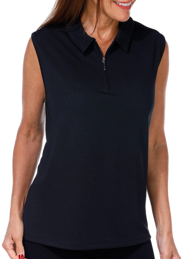 The Golf Women's Textured 1/4 Zip Sleeveless Polo is a perfect blend of performance and style. Made from 100% polyester, this 21-inch length polo features a textured fabric that offers breathability and comfort during your game. The 1/4 zip design provides adjustable ventilation, while the sleeveless style ensures full range of motion, keeping you cool and confident on the course.