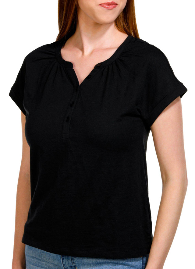 Elevate your everyday wardrobe with the Women's Solid Dolman Henley Short Sleeve Top, crafted from 100% cotton for ultimate comfort and breathability. This versatile top features a relaxed dolman sleeve design that effortlessly blends style and ease, making it perfect for casual outings or leisurely days. The classic Henley neckline adds a touch of timeless charm, while the soft, durable fabric ensures a flattering fit that feels as good as it looks.