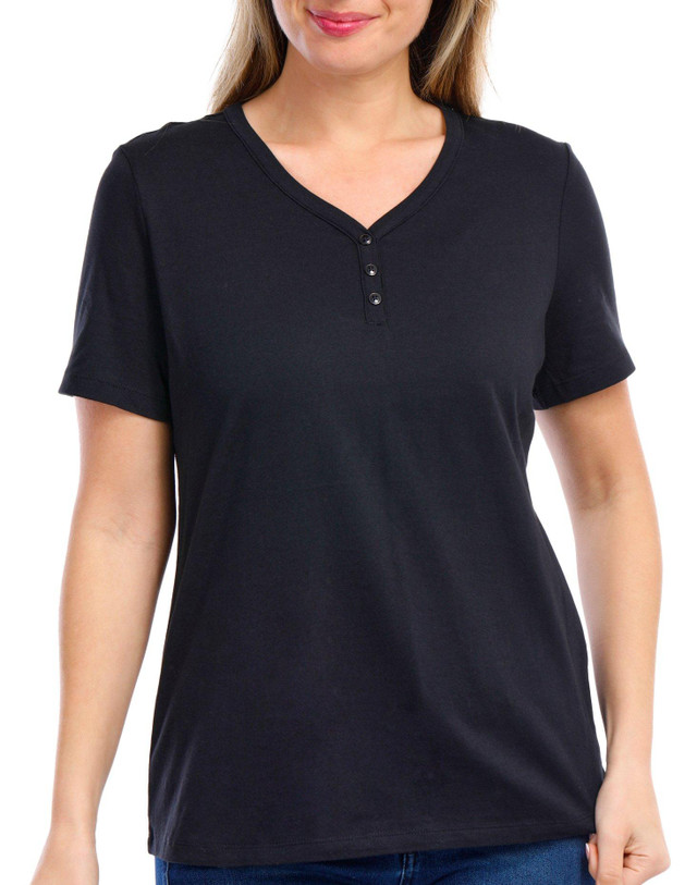 Introducing this versatile Short Sleeve Tee, designed with a classic buttoned henley neckline for a touch of timeless style. Crafted from premium, breathable fabric, this solid color tee is perfect for any occasion, whether you're dressing up for a casual outing or lounging at home. Its tailored fit ensures comfort and ease of movement, making it a must-have staple in your wardrobe.