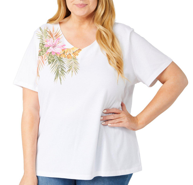 Elevate your casual wardrobe with the Plus Embellished Short Sleeve Top. Crafted from a soft and durable blend of 60% cotton and 40% polyester, this top offers all-day comfort and versatility. The eye-catching embellishments add a touch of elegance, making it suitable for both relaxed outings and semi-dressy occasions. With its timeless design and comfortable fit, this top is a stylish staple you'll reach for again and again!