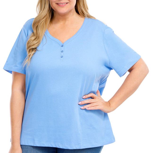 Elevate your casual wardrobe with this Short Sleeve Tee. Featuring a stylish V-neck with button details, it adds a touch of edgy flair to a classic design. The solid color makes it a versatile piece that can be easily paired with jeans, shorts, or skirts. Perfect for both casual outings and relaxed days at home, this tee combines comfort and style effortlessly.