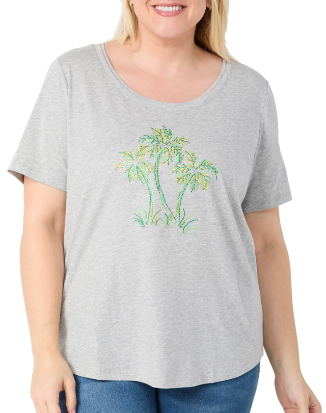 Coral Bay Plus Short Sleeve Embellished Palms Knit Top