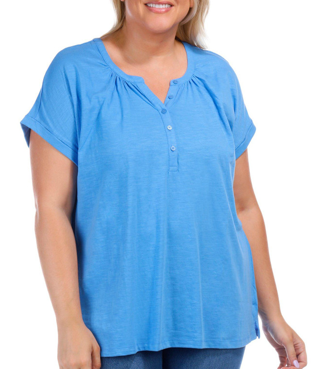Elevate your everyday wardrobe with this Solid Dolman Henley Short Sleeve Top, crafted from 100% cotton for ultimate comfort and breathability. This versatile top features a relaxed dolman sleeve design that effortlessly blends style and ease, making it perfect for casual outings or leisurely days. The classic Henley neckline adds a touch of timeless charm, while the soft, durable fabric ensures a flattering fit that feels as good as it looks.