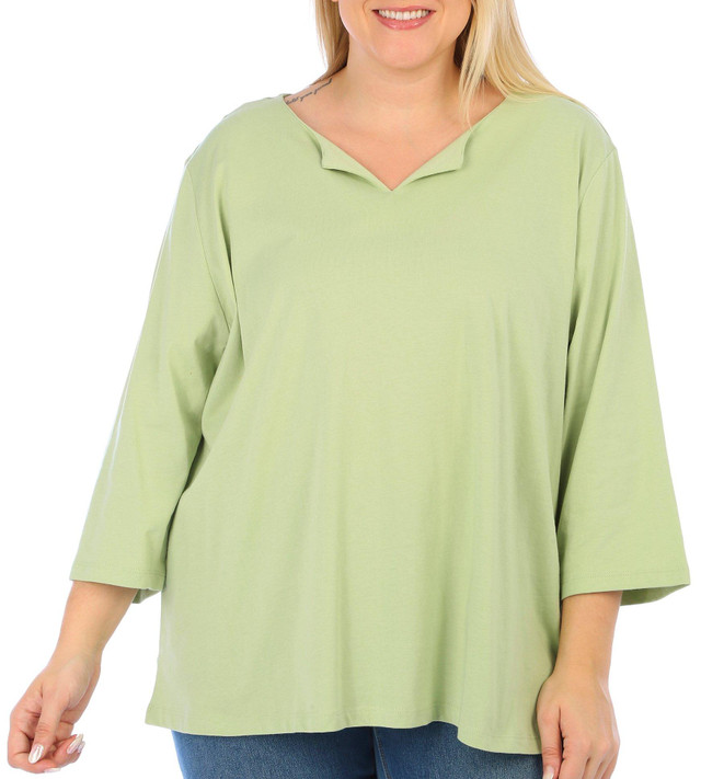 Introducing our versatile 3/4-Sleeve Top, perfect for any occasion. This solid color top features a stylish split V-neck that adds a touch of sophistication to your look. The 3/4 sleeves provide a comfortable and flattering fit, making it an ideal choice for both casual and dressy outfits. Embrace a blend of elegance and simplicity with this timeless piece.