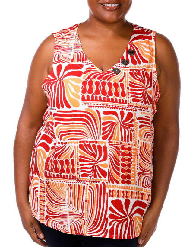 Add a pop of personality with this Women's Sleeveless Print V-Neck Crepon Top. Featuring a stylish allover print, lightweight crepon fabric, and a flattering V-neckline with button embellishments, it is perfect for effortless, warm-weather chic.