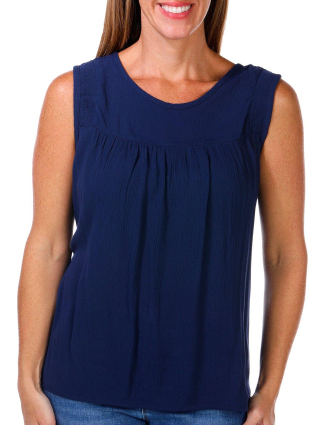 Elevate your summer style with this Women's Solid Crepon Tank Top. Featuring a breezy sleeveless design, crew neckline, and a chic back keyhole detail, its soft crepon fabric and solid color make it perfect for warm-weather layering or solo wear. Fabrication 100% rayon