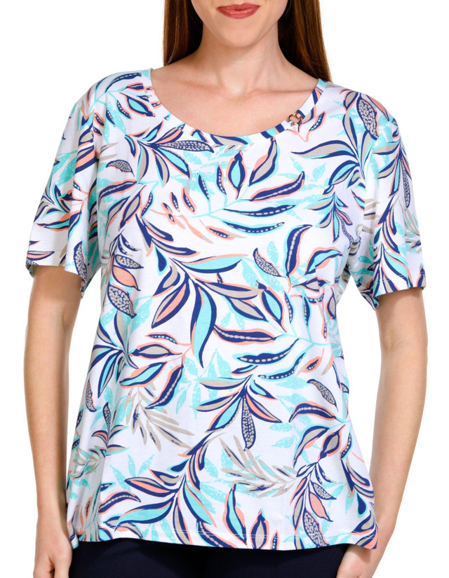 Coral Bay Womens Short Sleeve Palm Tree Top