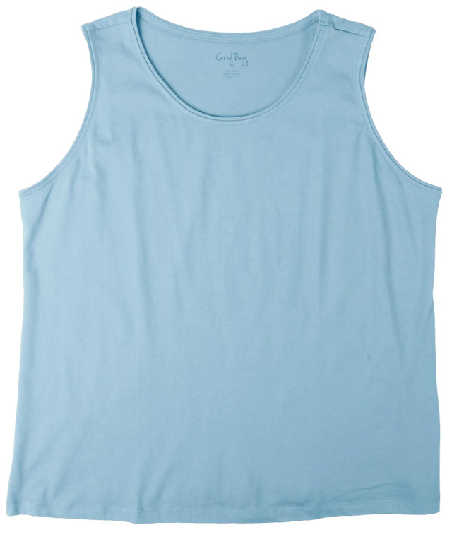 Coral Bay offers every day, classic, casual collections for your relaxed lifestyle. This sleeveless top features a solid color pattern and round neckline. Measures approximately 26'' in length.