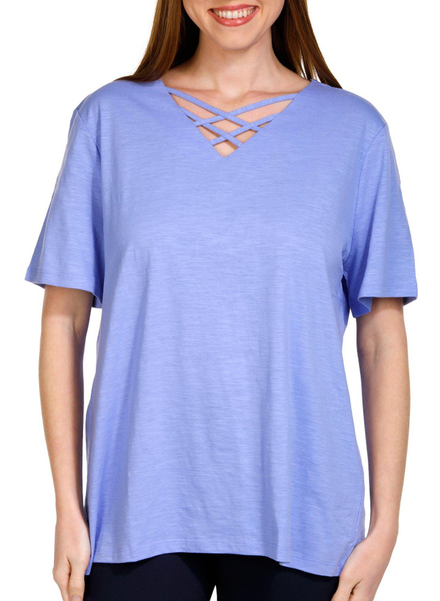 Elevate your everyday style with the Womens Solid V-Neckline Short Sleeve Top. Made from 100% soft and breathable cotton, this versatile top offers superior comfort and a flattering fit. The classic V-neckline adds a touch of elegance, making it easy to dress up or down for any occasion. Whether paired with jeans for a casual outing or layered under a blazer for a polished look, this top is a wardrobe essential that combines simplicity with effortless style.