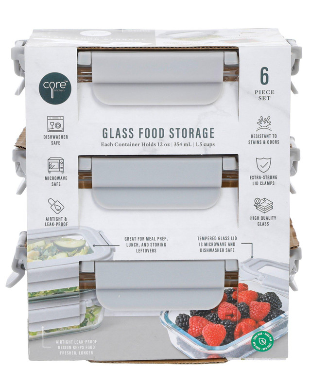 Introducing our 6 Pc Glass Food Storage Set, perfect for keeping your meals fresh and organized. This set includes three containers and three matching lids, all designed to be dishwasher and microwave safe for easy cleaning and reheating. The airtight and leak-proof design ensures no spills, while the glass material resists food stains and odors. Each container measures 6 in x 3 in x 2 in, making them ideal for meal prep and storage.