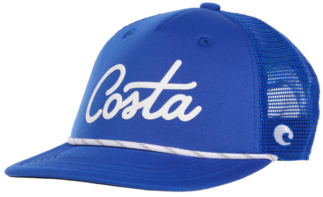 Top off your look with the Costa Trucker Hat featuring a firm structured front panel and large logo stamp. Designed with a distinctive string detail along the brim edge, it adds a bold accent between the panel and brim start. The breathable mesh back and adjustable snapback closure ensure all-day comfort and a secure fit