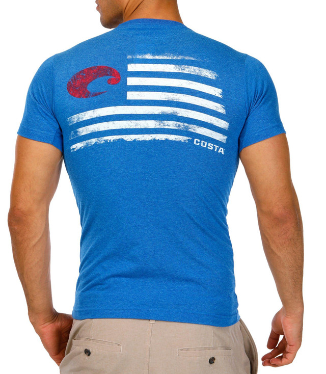 Celebrate coastal pride with the Men's Americana Flag Graphic T-Shirt. Made from polyester and cotton for all-day comfort, this tee features a bold flag graphic with patriotic flair. Fabrication is 65% polyester, 35% cotton.