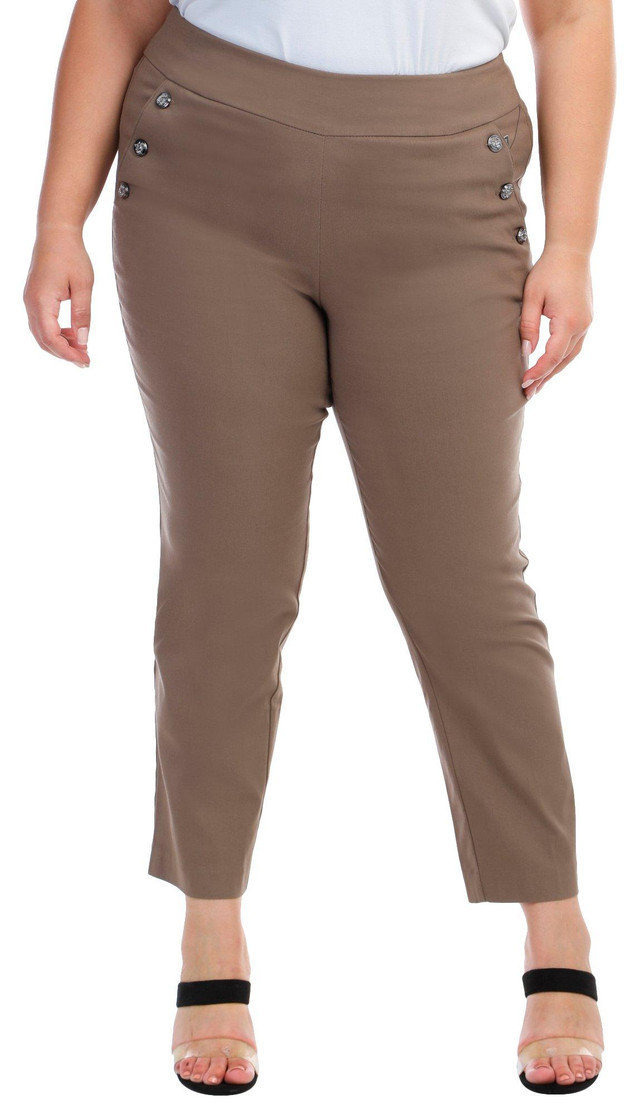 Bring nautical charm to your wardrobe with these Women's Sailor Ankle Pants. Featuring a solid color, 27-inch inseam, and side pockets accented with sailor-style buttons, they offer a polished yet playful look perfect for work or weekend wear. Fabrication 75% rayon, 22% nylon, 3% spandex.