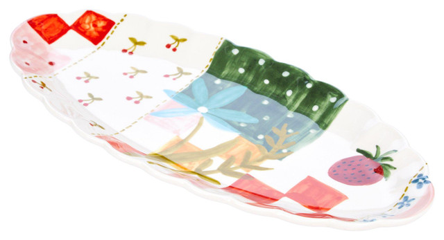Introducing the 14.5 in Hand Painted Stoneware Platter, a stunning centerpiece for your dining table. Measuring 14.5 in x 7 in, this platter showcases a stylish hand-painted design that adds a touch of artistry to any meal. The scalloped edges enhance its elegant appearance, making it perfect for serving appetizers, main courses, or desserts. Crafted from durable stoneware, this platter combines beauty and functionality, ideal for both special occasions and everyday use.