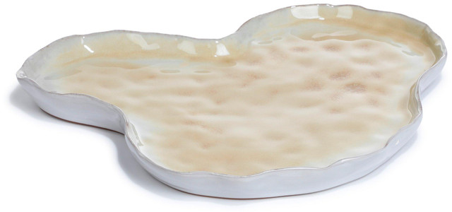 This delightful Organic Shaped Stone Serving Plate from Creative Coop is perfect for your next dinner or cocktail party. Uniquely shaped and coated in a glaze, it brings an essence of simplicity and sophistication. Whether used to hold snacks, trinkets, or purely for decorative purposes, this plate will add a touch of style to the room. It is also microwave safe if you need to keep food warm. Measures 12 in x 12 in.