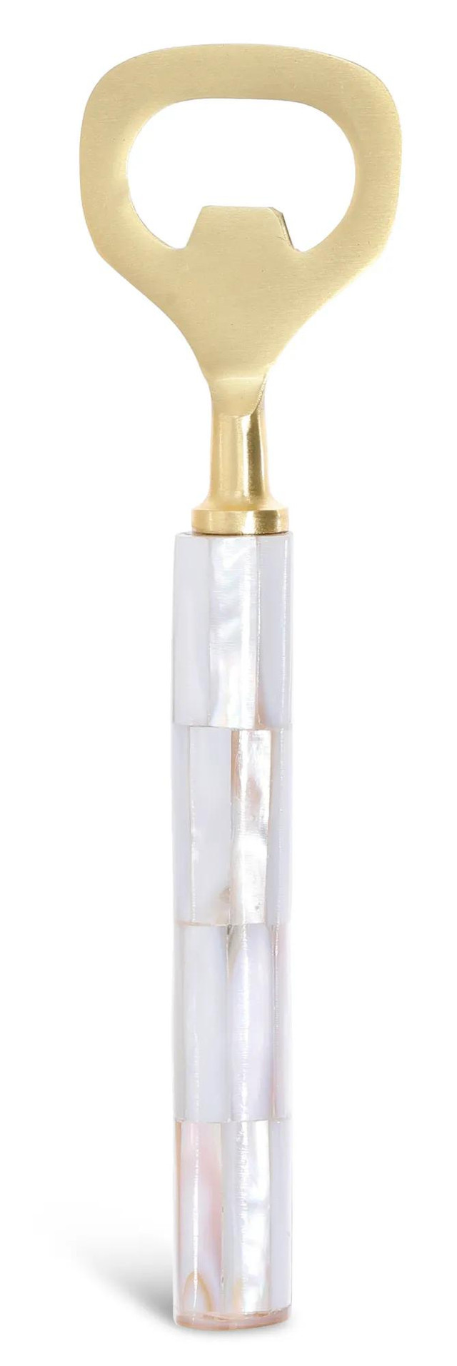 Elevate your home bar with this elegant bottle opener featuring a gleaming gold-finished stainless steel head and a mango wood handle inlaid with luminous mother-of-pearl. A perfect blend of natural texture and refined detail, it adds a touch of sophistication to any entertaining space.