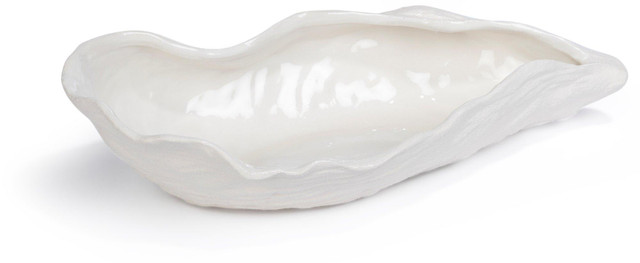 Add a touch of coastal charm to your dining experience with this Stoneware Oyster Shaped Serving Bowl. Crafted from glazed and unglazed ceramic, it measures 16 inches by 7 inches by 4 inches, offering ample space for serving your favorite dishes. The unique oyster shape and elegant finish make it a standout piece, perfect for both casual and formal gatherings.