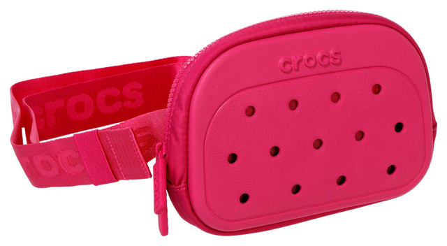 This belt bag features a hard front and soft back with a zip around closure. It has an adjustable strap, interior slip and zipper pockets, plus an extra back pocket. Practical and stylish, it keeps essentials close while adding ease and confidence to every outing. Measures approximately 8 in x 6 in x 1.5 in.