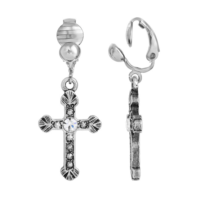 These crystal accent cross earrings are the epitome of delicate elegance. Available in both 14k gold-dipped and silver-tone options, they inspire with their refined drop style. Perfect for adding a touch of sophistication to any outfit, these earrings are versatile enough for everyday wear or special occasions. Length 1.25 in., width 15mm.