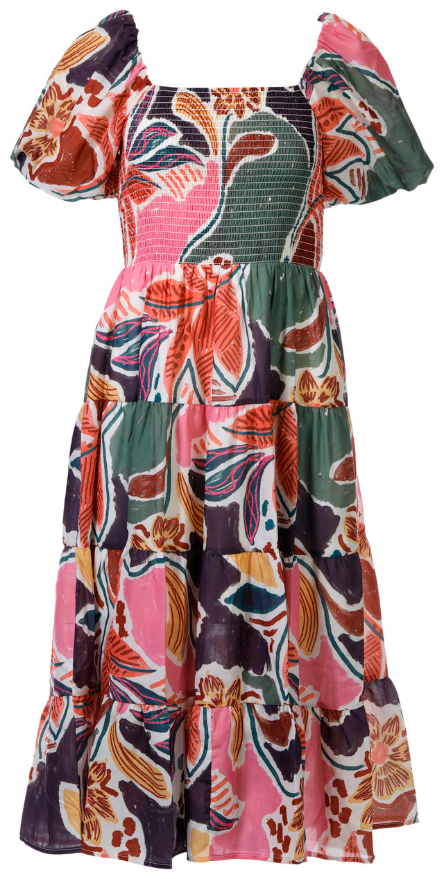 Introducing the Short Puff Sleeve Dress, a vibrant addition to your wardrobe. This eye-catching dress features a bright print pattern that exudes energy and charm. The playful puff sleeves add a touch of whimsy, while the built-in liner ensures comfort and coverage. The tied back detail offers a customizable fit, making this dress perfect for any occasion.