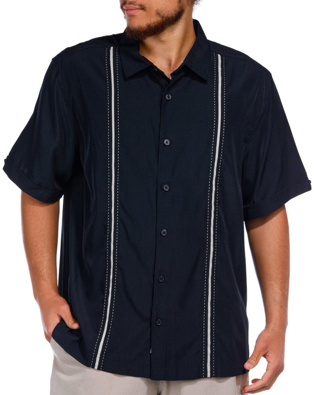 Elevate your casual wardrobe with this short sleeve shirt, crafted from woven soft touch fabric for ultimate comfort. Featuring a buttoned front and a distinctive vertical stripe insert panel, this shirt adds a modern twist to a classic design. Perfect for warm weather and relaxed outings, it combines style and ease effortlessly.