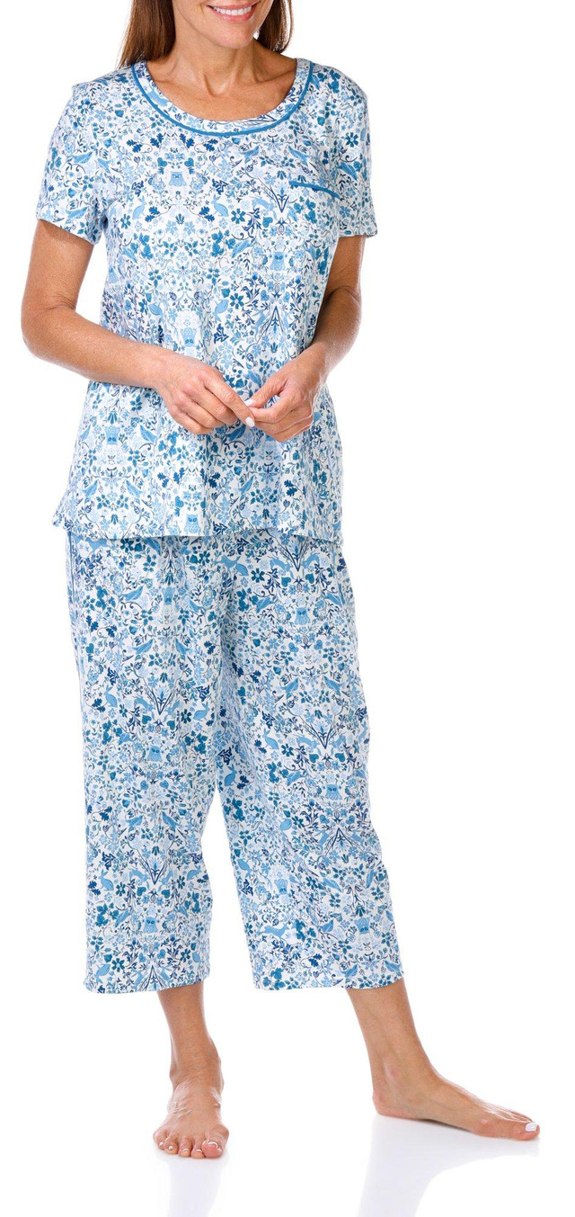 Cozy up in our Womens 2-Piece Woodland Ditsy Floral Pajama Pants Set, featuring a soft short sleeve top and matching pants, both adorned with a charming floral print for a relaxed and feminine sleepwear look. Fabrication 57% cotton, 38% modal, 5% spandex